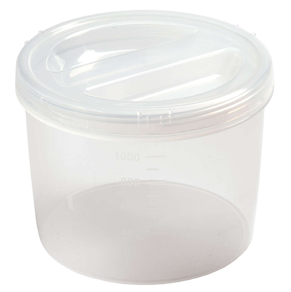 Прозрачный корпус и крышка позволяют видеть содержимое, а мерная шкала на корпусе поможет определить объем продукта.
