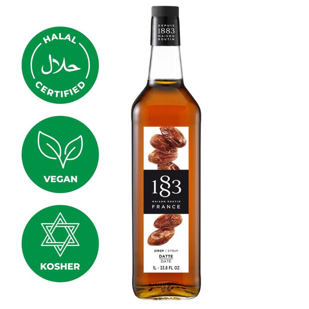 Сироп Финик 1883 обладает насыщенным и ярким ароматом, а его вкус раскрывается нотами чернослива, инжира, шоколада и мёда. Сироп Финик 1883 изготовлен из тщательно отобранных ингредиентов, включая натуральный тростниковый сахар.