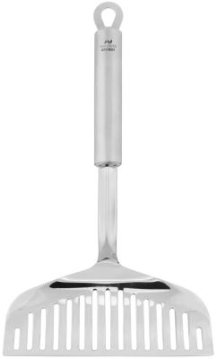 Металлическая лопатка довольно жесткая, поэтому не подходит к посуде с антипригарным покрытием.
