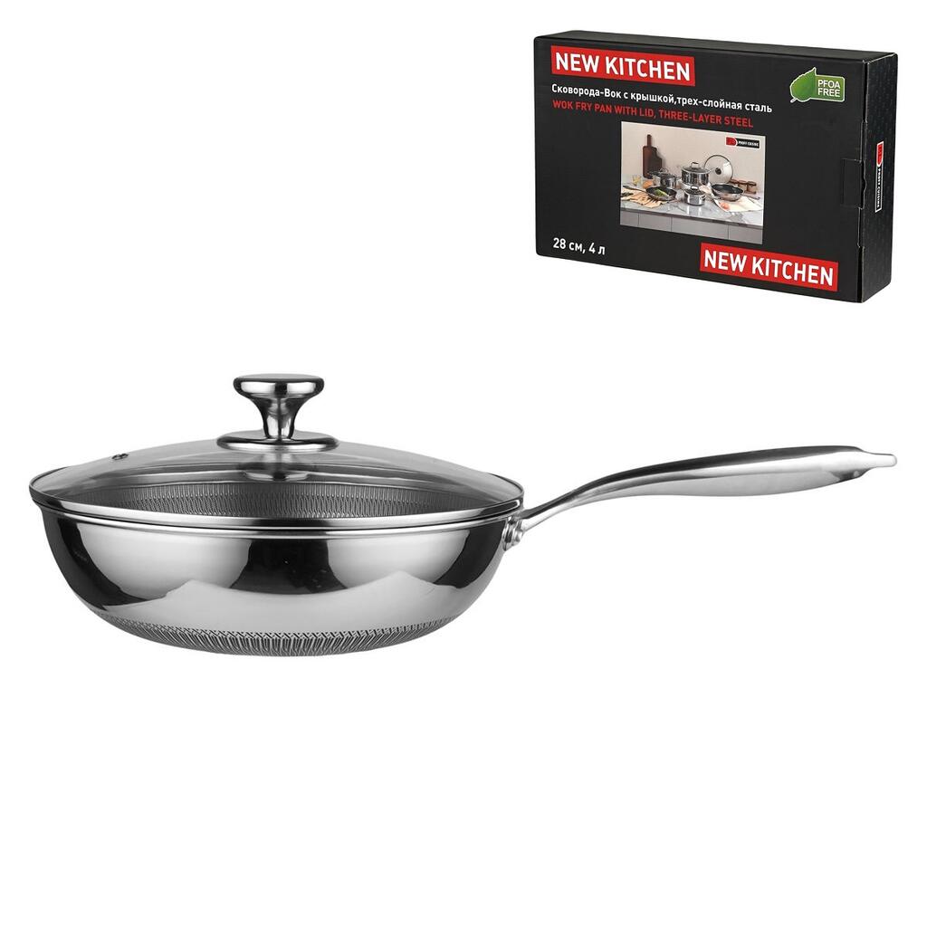 Нерж. сталь "TRI-PLY" с уникальной архитектурой рабочей поверхности нанесенной лазером в виде рельефного сетчатого узора, последующим травлением и нанесением антипригарного покрытия. Такая поверхность создает невидимый слой между едой и поверхностью сковороды, снижает образование масляного дыма и отделяет водяной пар от продукта и прекрасно защищает сковороду от царапин. Важно! Перед первым использованием сковороду нужно вымыть с моющим средством, затем налить 2/3 воды от объема и довести до кипения на среднем огне, подождать 5 минут, выключить нагрев и оставить остывать естественным образом еще на 5 минут. Затем смажьте внутреннюю поверхность сковороды растительным маслом (или любым жиром) и нагревайте ее на среднем огне, 1-2 минуты. После дайте остыть и очистите ее водой. При дальнейшем использовании, необходимо свести к минимуму сильное нагревание, так как сковорода обладает очень сильной теплопроводностью. Это снизит прилипание продуктов к сковороде и предотвратит подгорание.