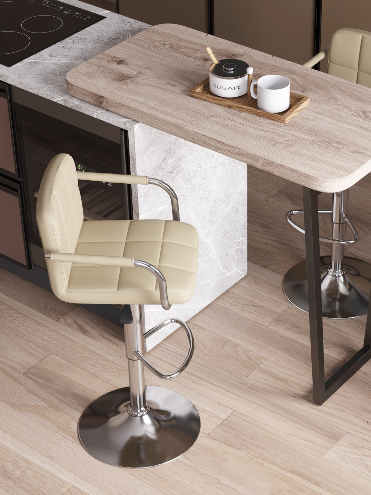 Стул Stool Group барный МАЛАВИ бежевый, поворотно-подъемный механизм газ-лифт, обивка сиденья из искусственной кожи - идеальное решение для домашнего бара.