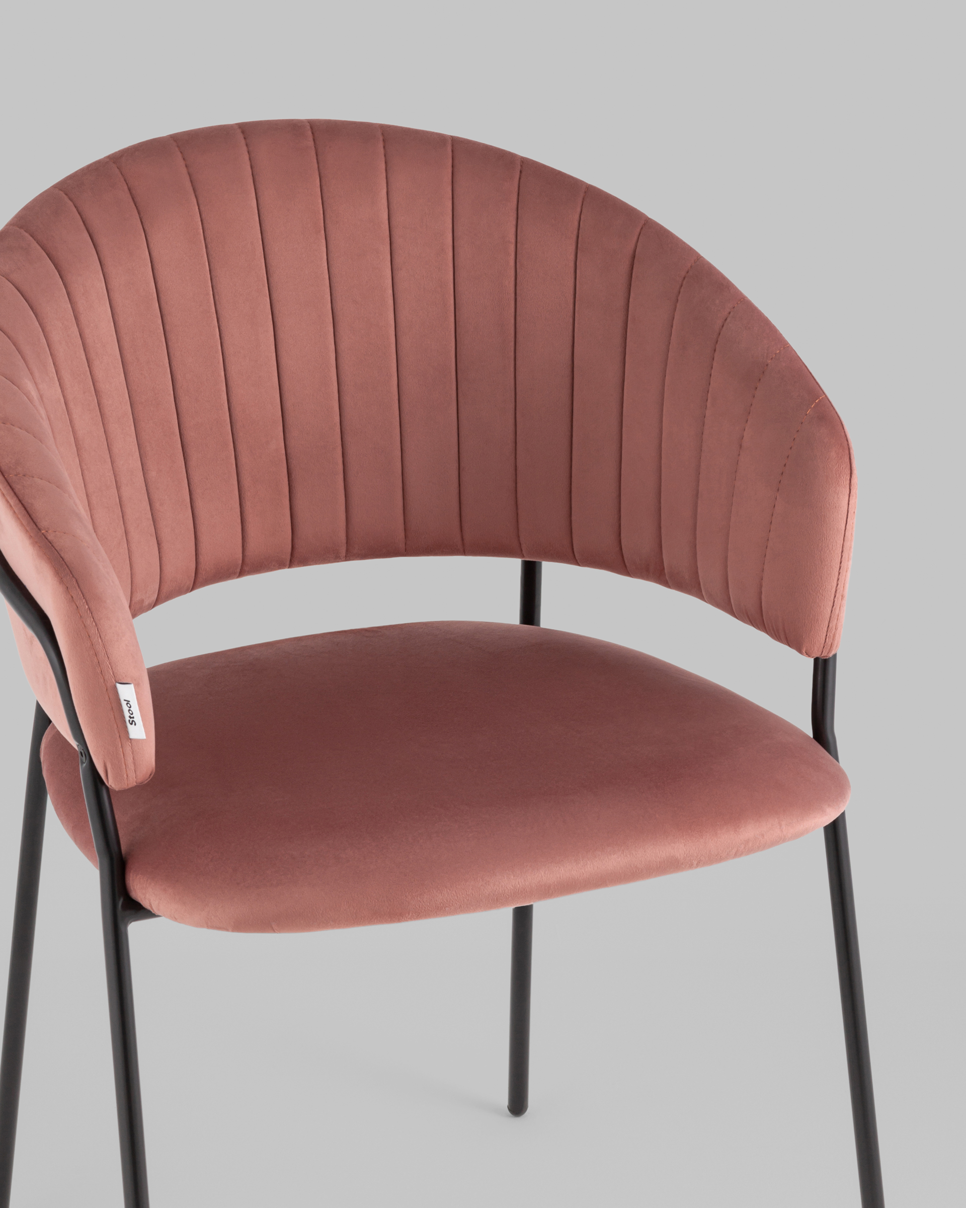 Стул с подлокотниками Бруно велюр пыльно-розовый ножки черные металл