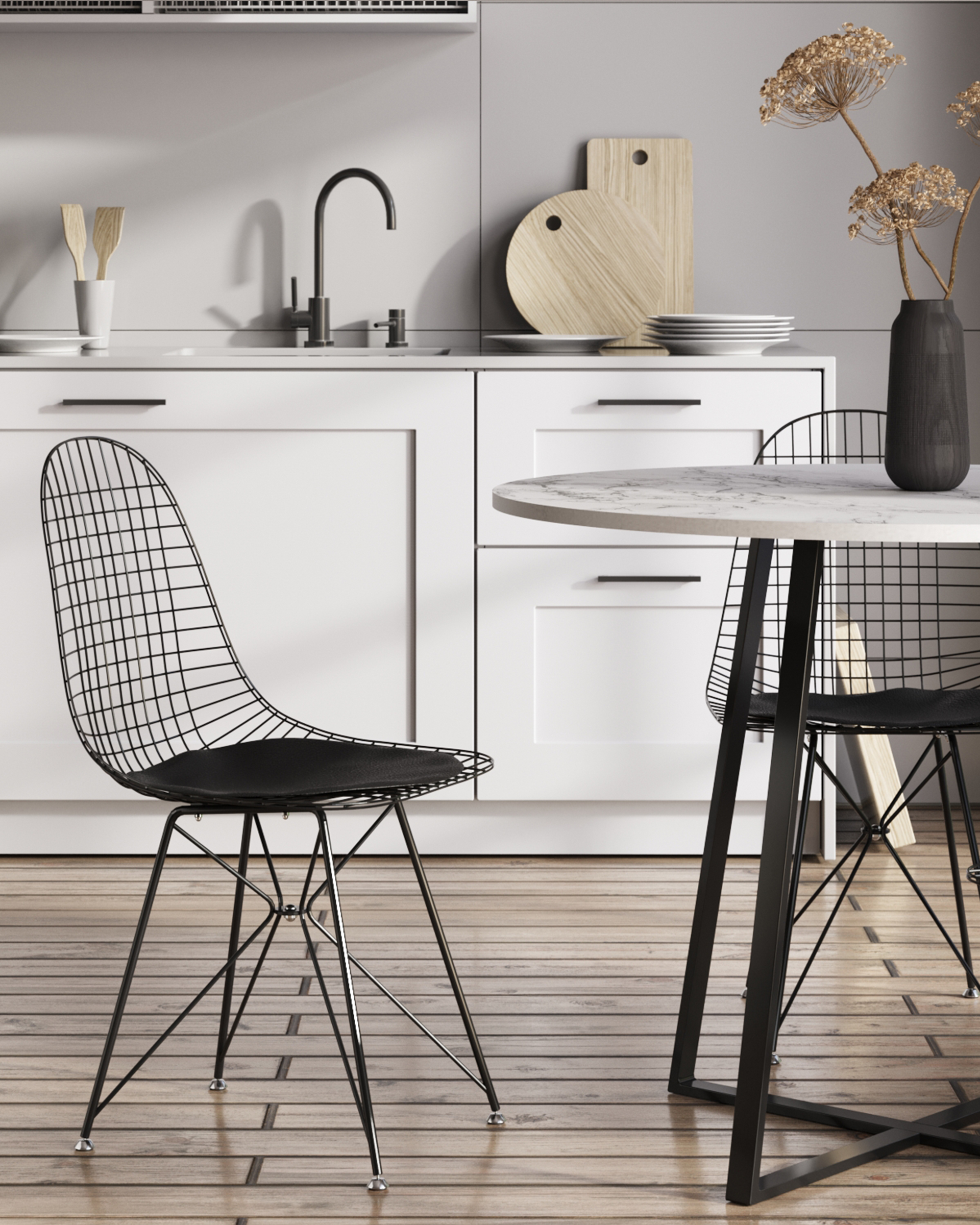 Стул обеденный Eiffel из металла цвет черный с подушкой из черной экокожи