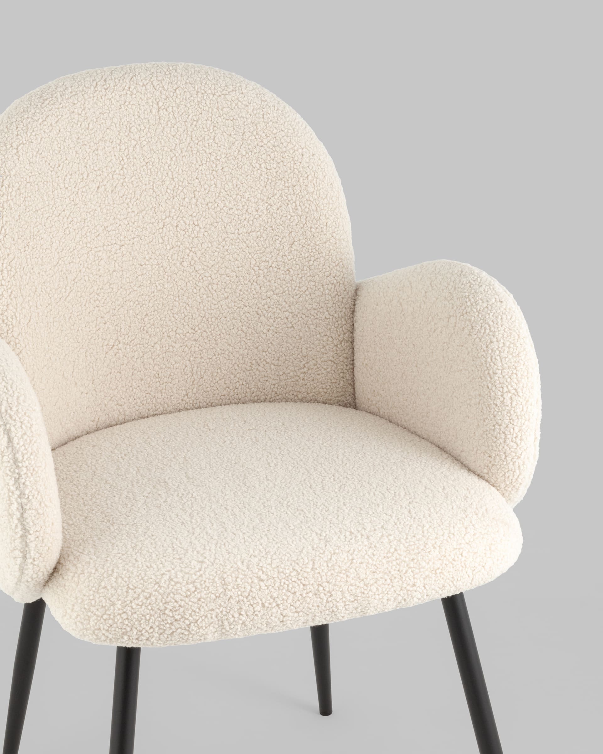 Стул обеденный Wave букле белый с подлокотниками ножки металл черные
