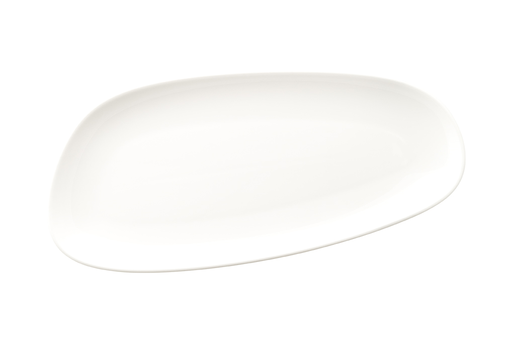 Блюдо белого цвета со сливочным оттенком.