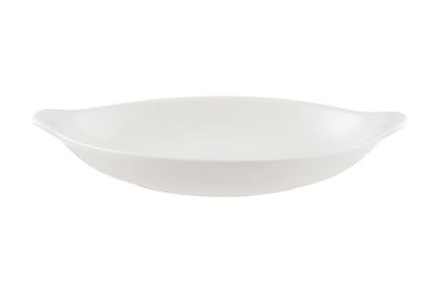 Блюдо белого цвета со сливочным оттенком.