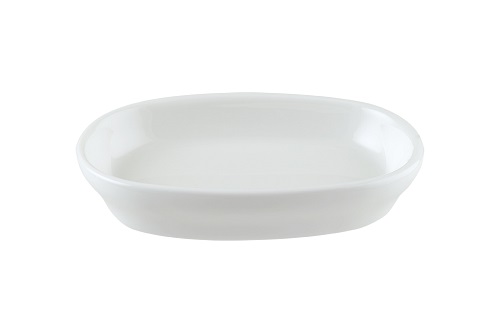 Блюдо белого цвета со сливочным оттенком.