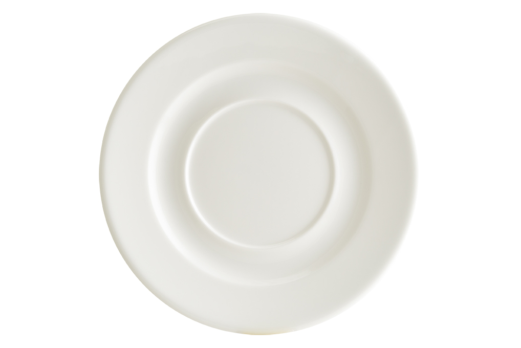 Блюдце белого цвета со сливочным оттенком.