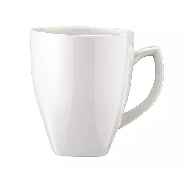 Кружка белого цвета со сливочным оттенком.
