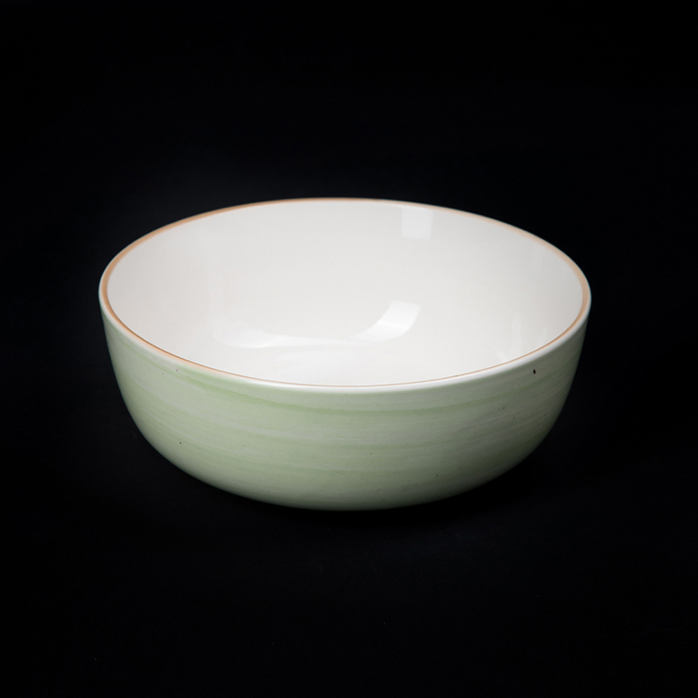 Тип посуды: салатник; Серия: Natura; Материал: фарфор; Форма: круглая; Основной цвет: зеленый; Диаметр, мм: 165; Номинальный объем, мл: 900; Особенности: снаружи зеленый - внутри белый, ручная роспись;