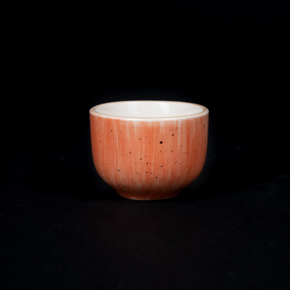 Тип посуды: соусник; Серия: Natura; Материал: фарфор; Форма: круглая; Основной цвет: коралловый; Диаметр, мм: 53; Номинальный объем, мл: 55; Особенности: снаружи коралловый - внутри белый, ручная роспись;