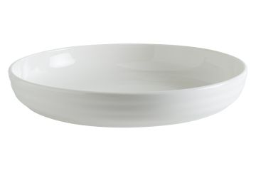 Тарелка белого цвета со сливочным оттенком.